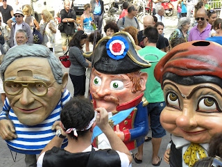 A la Plaça Sant Jaume encapçalaran la festa, tot recordant que són patrimoni de tots els nens i nenes - tal i com proclamà fa més d'un segle el Consell de Cent a proposta de Joan Maragall -, en Jaume I i la Violant, els nostres estimats gegants de la Ciutat.