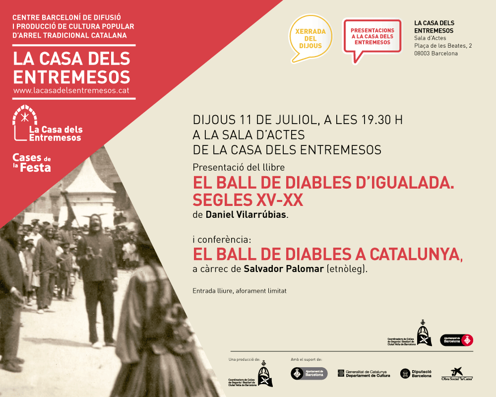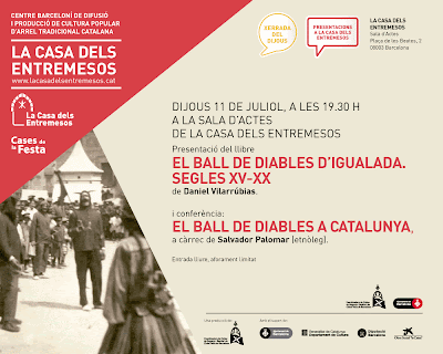 Uns informen que el proper dijous 11 de juliol, a les 19:30 hores, a La Casa dels Entremesos, es realitzarà la presentació del llibre "EL BALL DE DIABLES D'IGUALADA. SEGLES XV-XX"de Daniel Vilarrúbies