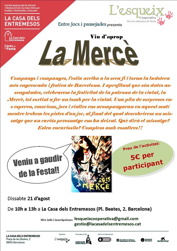 En motiu de la festa major de Barcelona, La Mercè, proposem a tots els nens i nenes que ens ajudin a descobrir les pistes del joc que farem pel centre de la ciutat que ens portarà a un missatge secret que haurem de desxifrar.